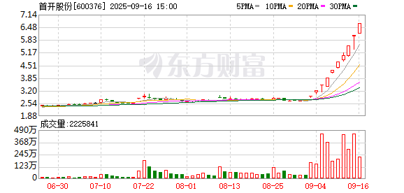 9月16日,首开股份再度涨停,录得10个交易日内的第9个涨停板,截至收盘报6.67元/股。自9月3日以来,这家主营房地产开发的公司股价累计涨幅高达152.65%,累计换手率达到113.06%。