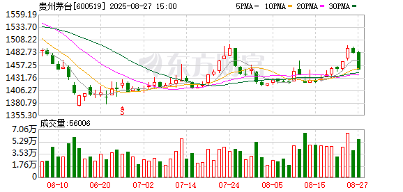 在超越贵州茅台之后,寒武纪的股价整体震荡上行,尤其是尾盘涨势强劲,相较而言贵州茅台盘中一度有所震荡下行。截至28日收盘,寒武纪股价上涨15.73%,每股股价接近1600元,收报1587.91元/股,贵州茅台股价则微跌0.13%,收报1446.10元/股。以此来看,寒武纪每股股价高出贵州茅台141.81元。