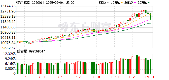 A股三大指数今日集体回调,截止收盘,沪指跌0.51%,收报3807.29点;深证成指跌1.23%,收报12510.60点;创业板指跌2.23%,收报2867.97点。沪深两市成交额达到21185亿,较昨日缩量3002亿。