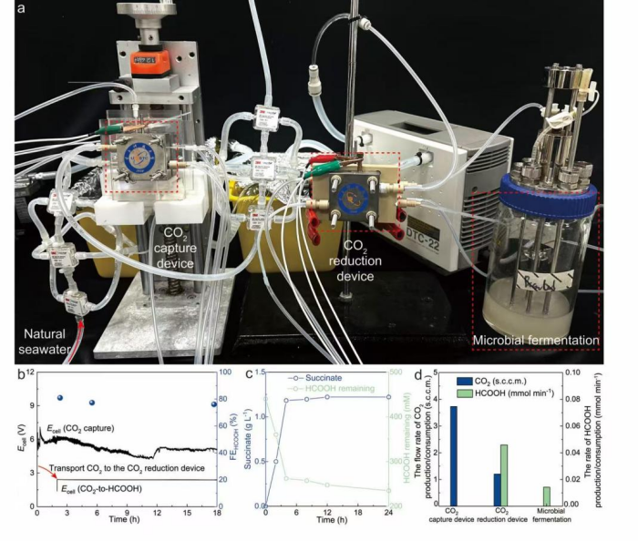 澎湃新闻记者获悉,10月6日,中国科学院深圳先进技术研究院定量合成生物学全国重点实验室、合成生物学研究所高翔团队联合电子科技大学夏川团队,首次提出并验证了一种基于“电催化+生物催化”耦合策略的“人工海洋碳循环系统”,相关成果发表在国际学术期刊《自然·催化》。电催化+生物催化的集成系统。该系统可捕集天然海水中的二氧化碳,并转化为可直接进入生物制造的中间体,再进一步升级为多类高价值化学品与材料。该研究以可降解塑料单体为示范案例,有望为燃料、医药与食品...
