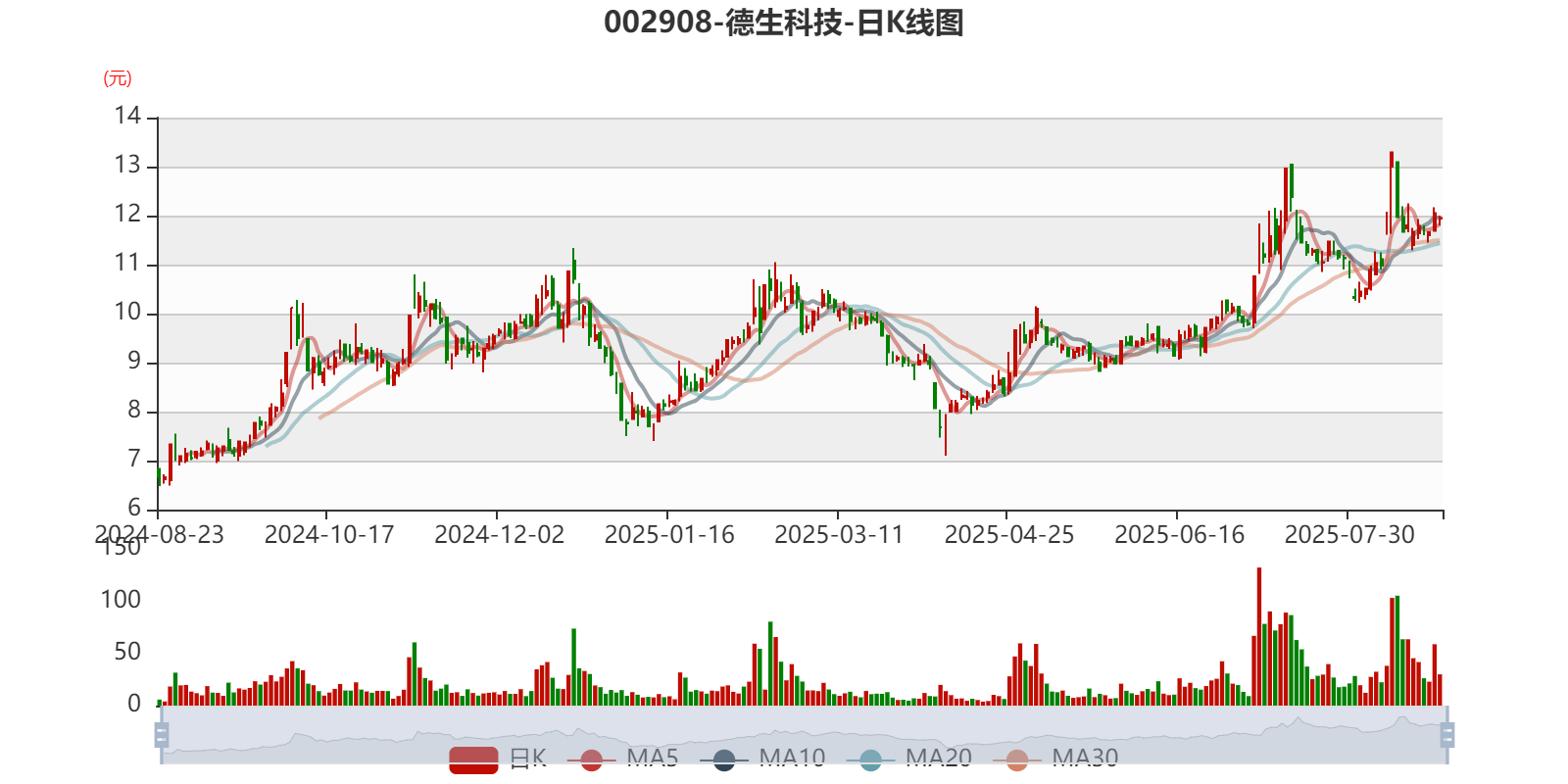 中证智能财讯德生科技(002908)8月23日披露2025年半年度报告。2025年上半年,公司实现营业总收入2.49亿元,同比下降14.27%;归母净利润886.98万元,同比下降36.47%;扣非净利润673.16万元,同比下降40.33%;经营活动产生的现金流量净额为-1.5亿元,上年同期为-1.22亿元;报告期内,德生科技基本每股收益为0.0206元,加权平均净资产收益率为0.79%。 以8月22日收盘价计算,德生科技...